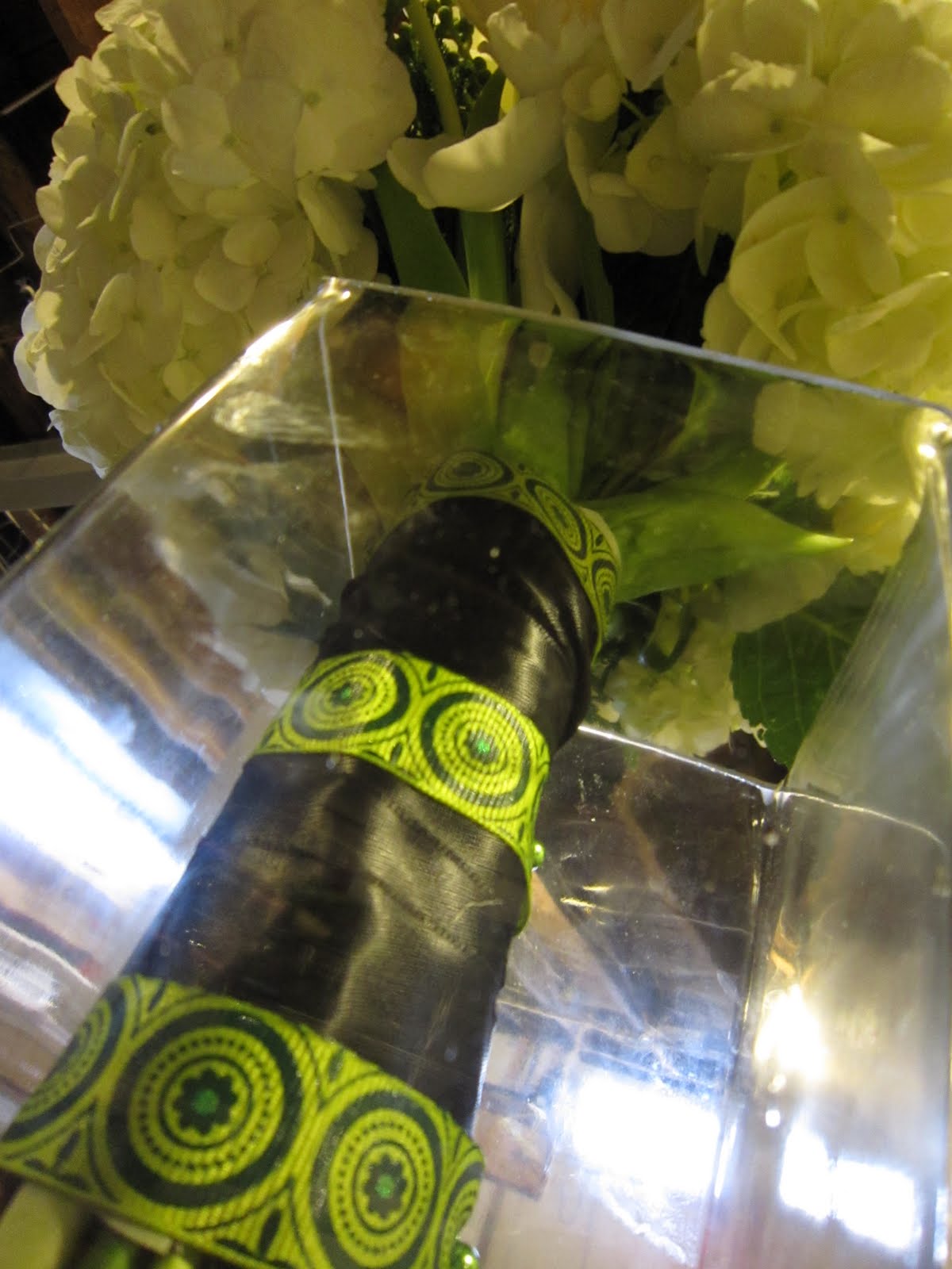 This is a black satin under a patterned green and black ribbon.