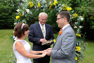 | As a symbol of their families joining, each person had one string of ribbon that they braided all together. |
