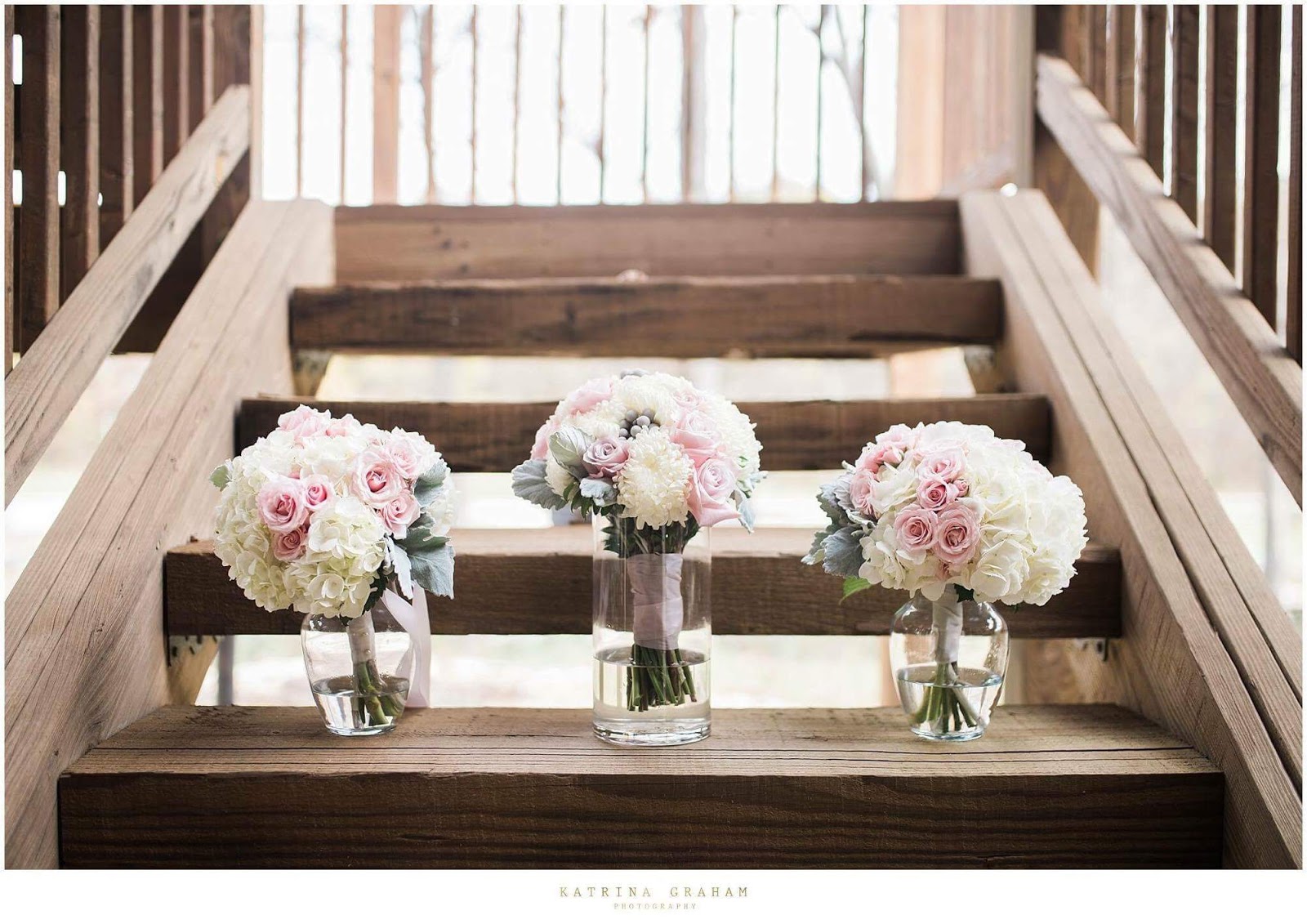 Kristy and Don had a romantic November wedding at Innsbrook. Kristy loved the look of blush pink with silver gray accents. Here are the flowers we designed for her with wonderful shots from Katrina Graham Photography.