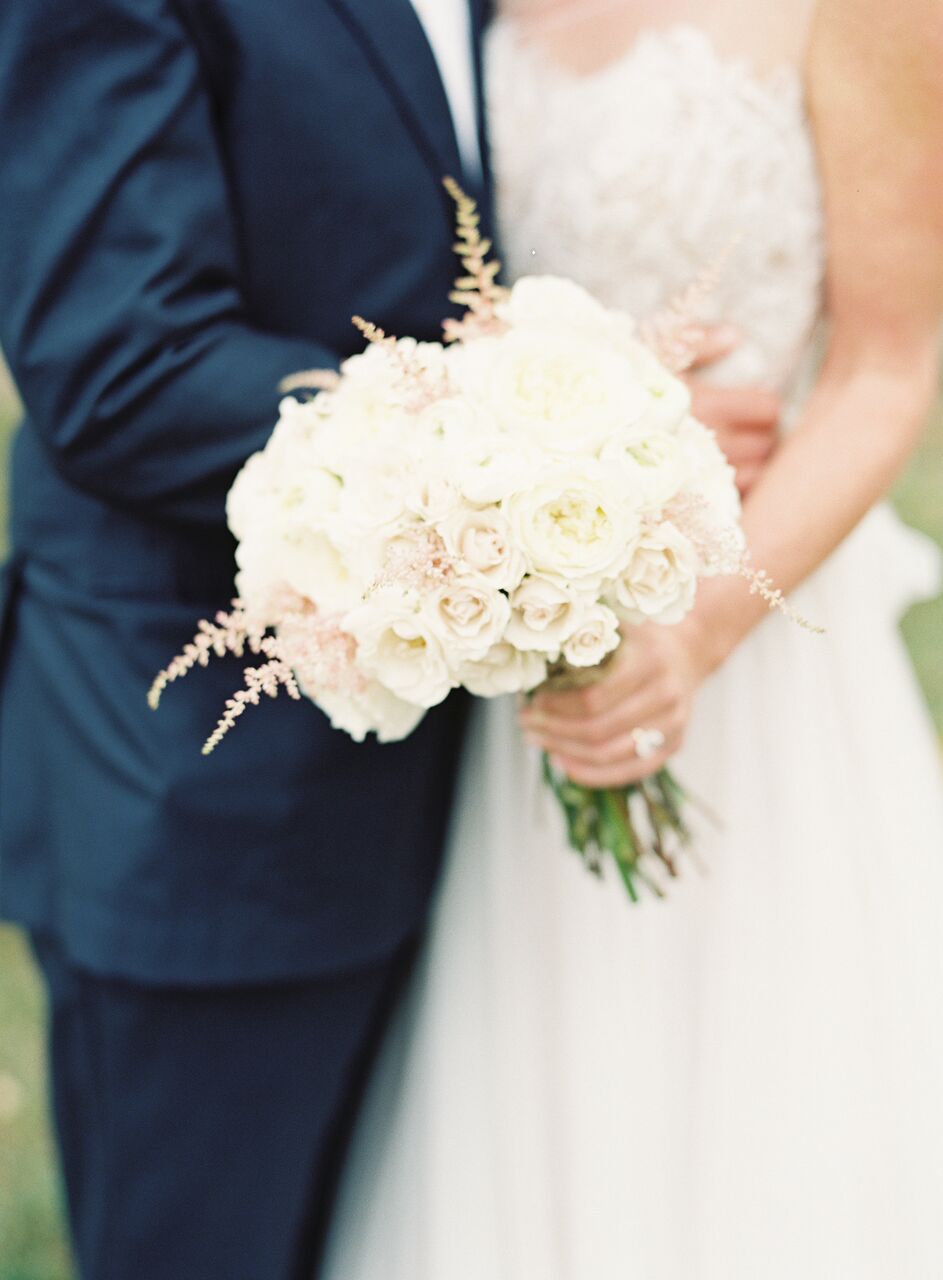 | The bridal bouquet was a petite mix of garden roses, ranunculus, and light pink astilbe. |