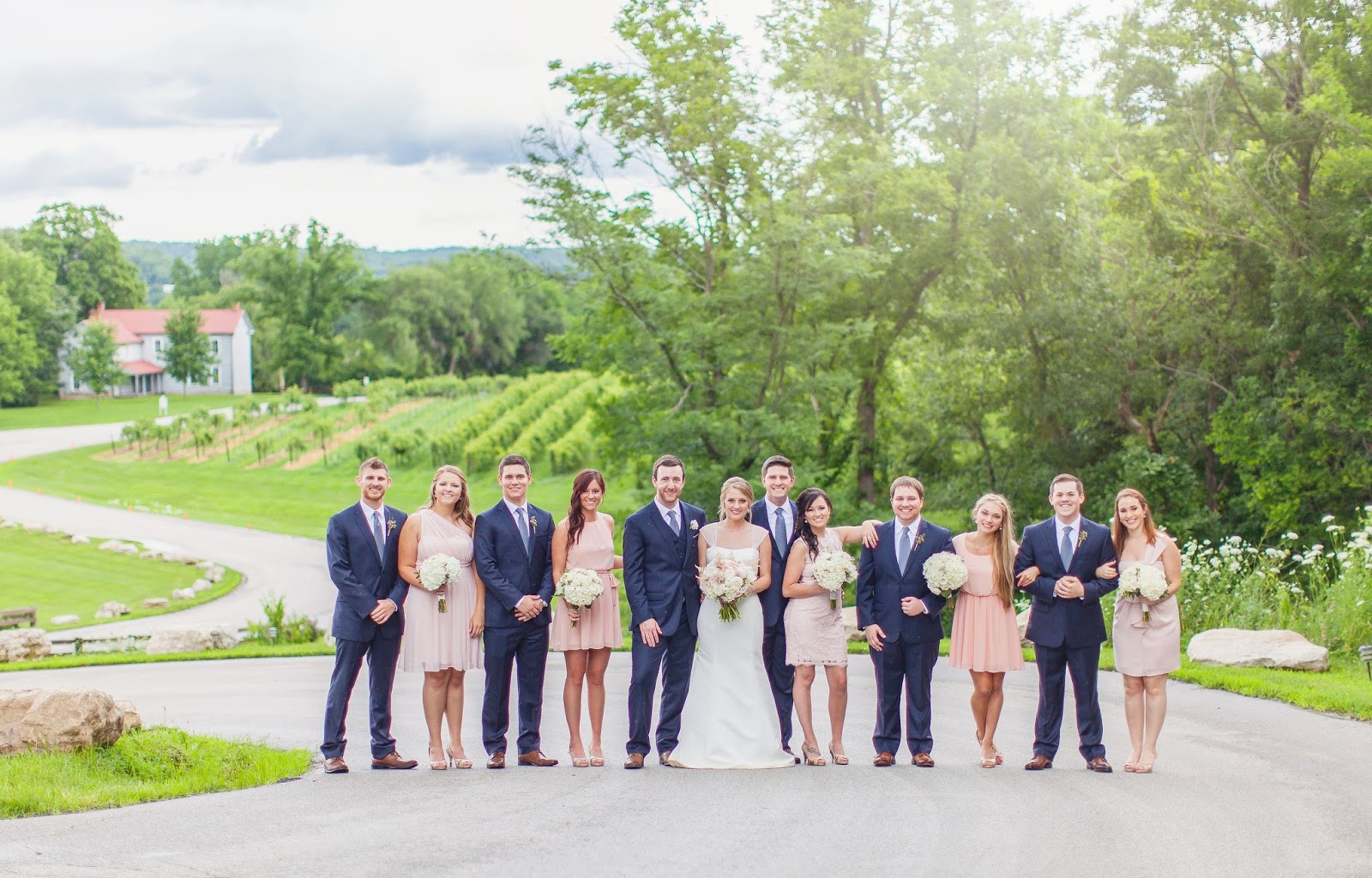 | The maids wore neutral shades of blush and carried ivory bouquets. |