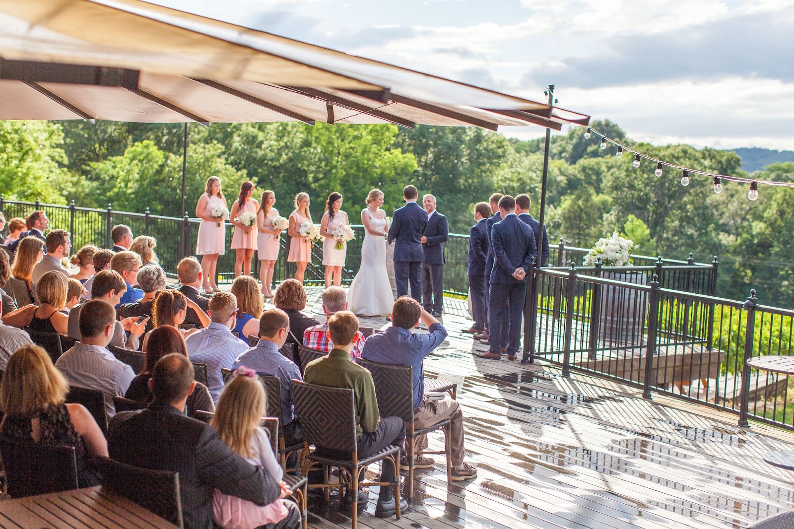 | After a bit of rain, the ceremony was held on the deck overlooking the winery. |