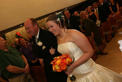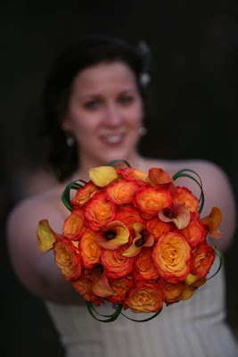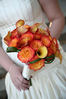 The bridal bouquet was a fall mix of mini calla lilies, roses, and looped lily grass.