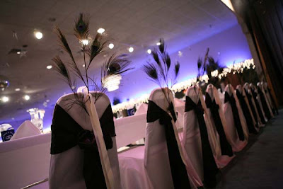For everyone out there considering using peacock feathers, here is an example of how we incorporated them into bouquets and as decorations at the ceremony and reception. Take a look! (Images by Tim McDermott)