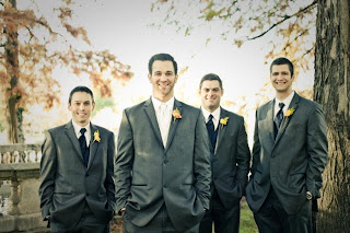 | More fall colors and textures decorated the guest tables in these overflowing bronze urns. |