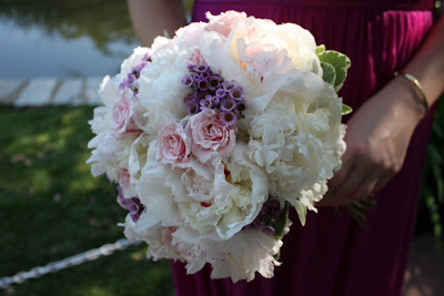 The bride’s bouquet had peach and white accents to her bright pink peonies. Her bridesmaids’ bouquets stayed very subdued in just whites and blush pinks.
