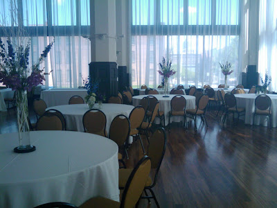 We had the pleasure of designing flowers for a prom held a Lumen. We did some cluster centerpieces and some tall arrangements with up-lights. Here are our snapshots at the set-up.