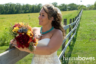 Brittany and Jason were married in June at an outdoor ceremony with a rustic barn reception at Weston Red Barn. All the flowers and designs reflected their casual, colorful style with lots of texture and wildflower-looking blooms. Photos by Hanna Bowes Photography.