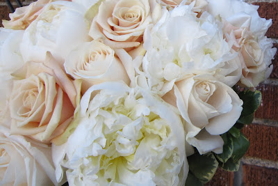 Saharas are one of our favorite roses to use. They have an awesome neutral tan color with just a hint of blush pink. They are one of the most versatile roses and work great with any color combo. Here is a shot of a white peony and Sahara rose bouquet that Sisters did recently.