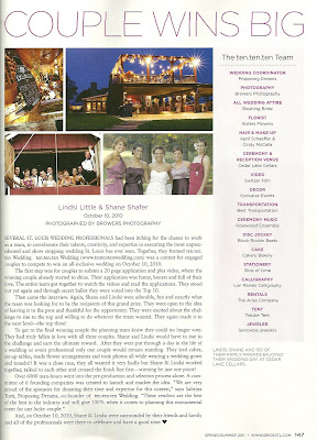 Spring/Summer 2011 St. Louis Bride Magazine The newest issue is out! It’s full of great articles and photos for every bride at any stage of planning! Here’s where you can find Sisters! Our Ad- 🙂 We are also featured in these “real moments” weddings- (Click on any image to make it larger.) There is also a great article about ten.ten.ten – Check out this new issue–on newsstands soon! 🙂