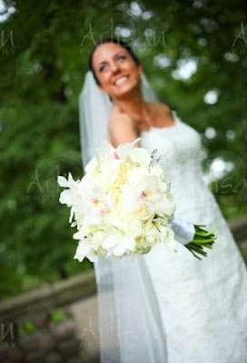 The bouquets were beautiful mixes of whites and greens. The all white and ivory bridal bouquet included mini callas, cymbidium orchids, roses, and crystals. The bridesmaids carried ivory roses and green cymbidium orchids with bear grass accents.