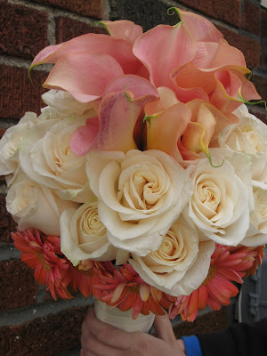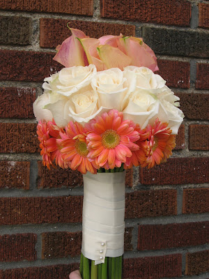 This style of bouquet is very unique. It’s an example of a stacked bouquet that uses different types of flowers in layers instead of mixed together. This was a bridal bouquet that we did in April.