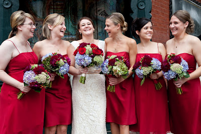 The bridal and bridesmaids’ bouquets incorporated dark purples, blues, red, and greens for a very rich color palate.