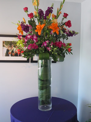 Tropical Inspired Centerpieces These are some snapshots of a tall and short centerpiece we did recently as a mock-up for a client. Bright, tropical flowers were the order of the day! The Tall: The Short: 🙂