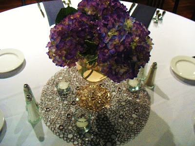 We often have clients who have containers or vases that they would like to use for their receptions. Here is an example of just that. This bride had her reception at Moulin and gave us her own amber glassware to use for the centerpieces. These are the snapshots that we took of the set-up.
