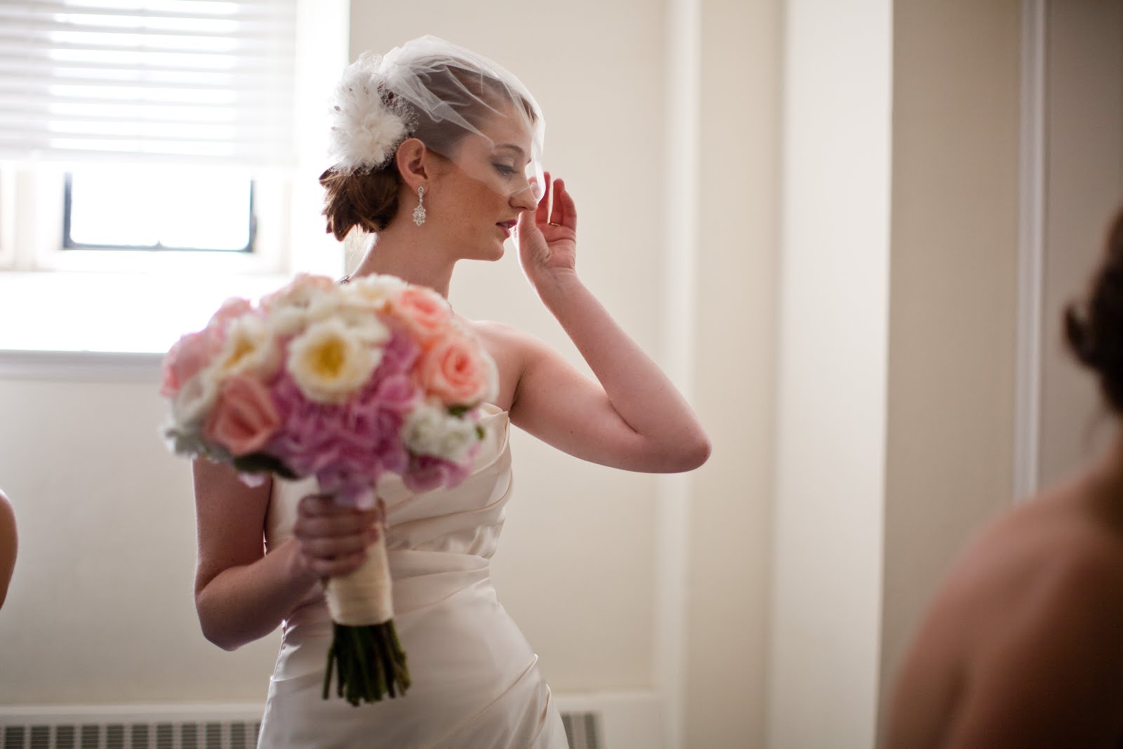 Every soft bloom in this wedding was selected with a vintage inspiration in mind for our bride, Madeline. The antique color palette brought femininity to the bouquets and the petal-y flowers were soft and inviting. Our favorite flower types for this particular bridal bouquet were the white ranunculus, ivory garden roses, and light pink hydrangea.
